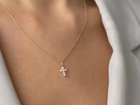 Biały Złoty Wisiorek Krzyż z Perłą - Naturalne Perły