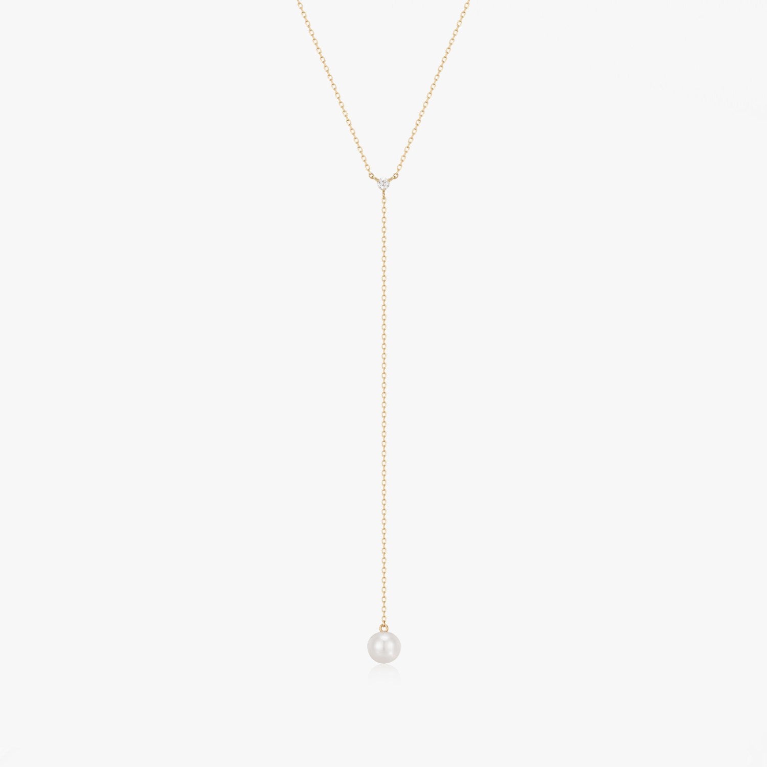 Cu un design elegant lariat, acest colier din aur combină strălucirea diamantului de la bază, cu delicatețea unei perle naturale ce evidențiază zona decolteului, perfect pentru bluzele cu decolteu în V sau cele fără bretele.
