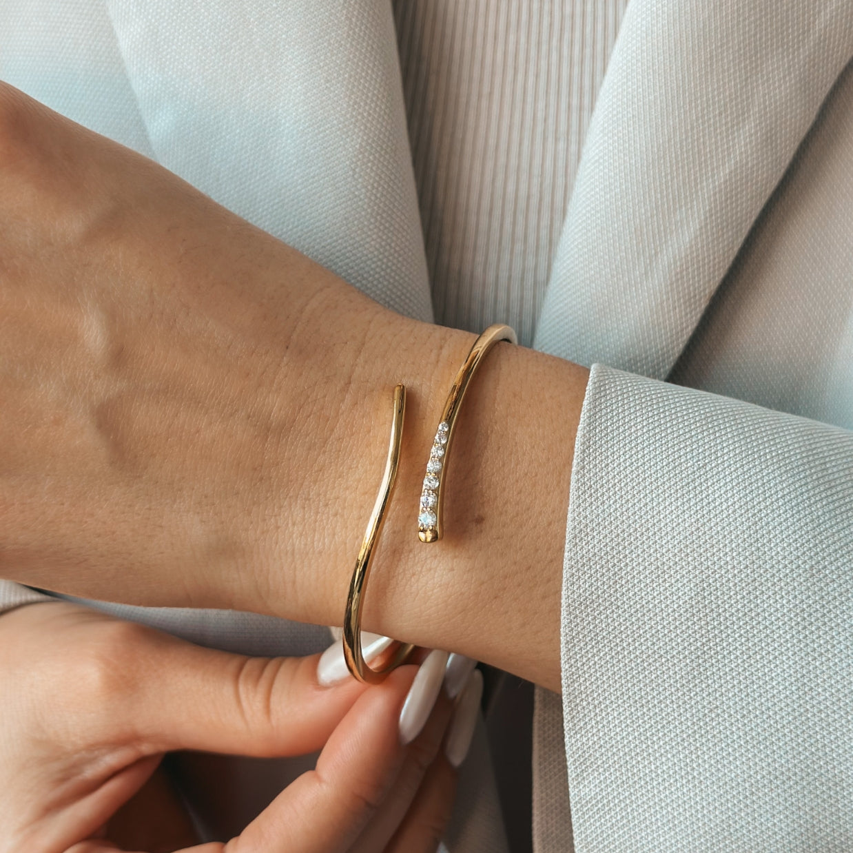 Wykonana z wysokiej jakości srebra, pokryta 14-karatowym złotem, ta bransoletka została zaprojektowana tak, aby trwała i uzupełniała Twoją kolekcję biżuterii przez długi czas. Subtelny blask cyrkonii oferuje wyrafinowany detal, idealny na momenty, gdy chcesz wyróżnić się bez wysiłku. Noś ją samodzielnie dla prostego wyglądu lub połącz z innymi bransoletkami dla nowoczesnego, warstwowego stylu.