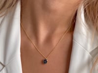 Srebrny Naszyjnik Złoty Serene - Topaz Niebieski Londyn - to srebrna biżuteria pokryta 14-karatowym żółtym złotem z hojną warstwą 2 mikronów dla zwiększonej trwałości na zużycie i kontakt z wodą.