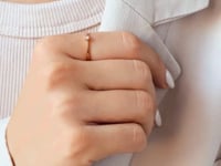 Złoto 14K zapewnia trwałość, a pojedyncze oprawienie pozwala na wnikanie światła z każdej strony, podkreślając diament. To subtelny, ale efektowny element, odpowiedni do noszenia na co dzień lub na specjalne okazje.