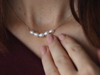 Elegancja w minimalistycznej formie – ten naszyjnik z pozłacanego 14K srebra próby 925, ozdobiony naturalnie pięknymi perłami, to doskonały dodatek na każdą okazję. Delikatny łańcuszek podkreśla starannie ułożone perły, dodając wyrafinowanego i kobiecego uroku.